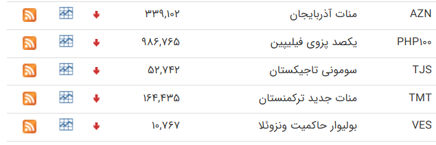 | خرید | فروش | تغییر نسبت به روز قبل | خرید | فروش | تغییر نسبت به روز قبل | ||