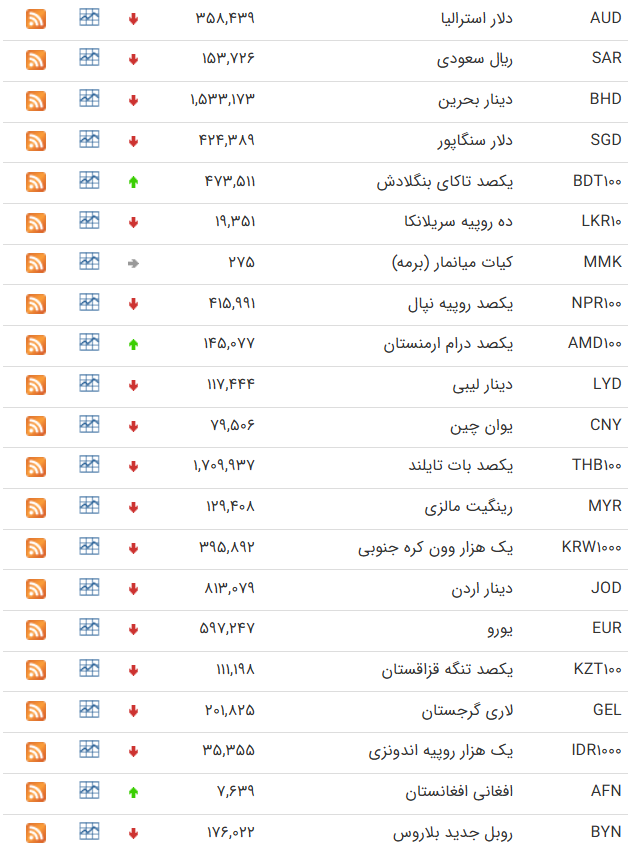 | ریال عربستان | SAR | ۱۸۲,۳۵۱ | ۱۸۴,۰۰۷ | ۵۶۶ | ۱۷۷,۳۸۴ | ۱۷۸,۹۹۵ | ۵۵۱ |