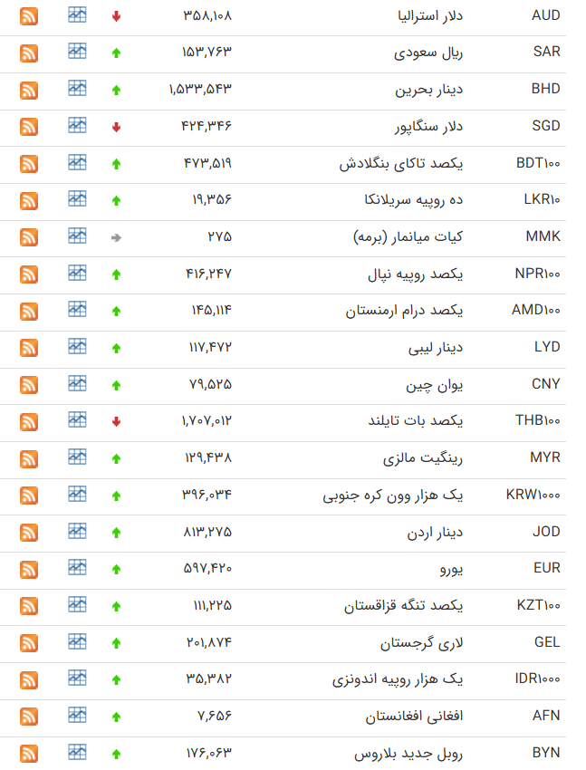 از سوی دیگر اسکناس درهم امارات نیز بدون تغییر 18هزار و 789 تومان ارزشگذاری شده و نرخ حواله درهم نیز 18 هزار و 277 تومان است
