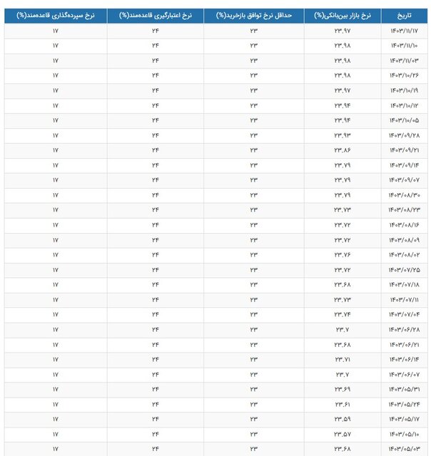نرخ بهره بین بانکی کاهشی شد +جدول