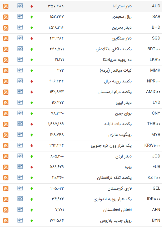 از سوی دیگر اسکناس درهم امارات نیز با کاهش به 18 هزار و 775 تومان ارزشگذاری شده و نرخ حواله درهم نیز 18 هزار و 264 تومان است