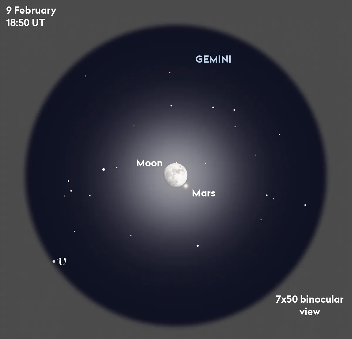 اگر امشب، ۹ فوریه ۲۰۲۵ (۲۱ بهمن) و بامداد فردا به ماه نگاه کنید، سیاره سرخ را در کنار ماه می‌بینید که منظره‌ای ایجاد می‌کند که با چشم غیرمسلح قابل مشاهده است.