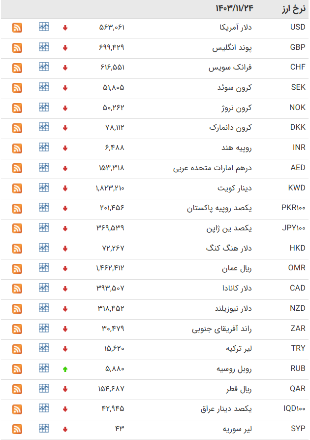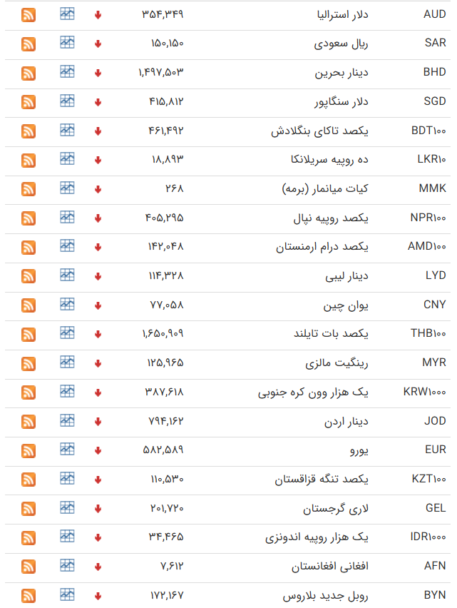 از سوی دیگر اسکناس درهم امارات نیز با کاهش به 18 هزار و 793 تومان ارزشگذاری شده و نرخ حواله درهم نیز 18 هزار و 281 تومان است