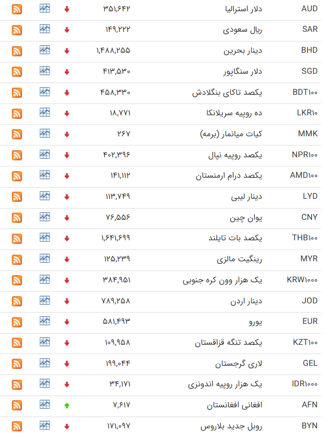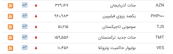| خرید | فروش | تغییر نسبت به روز قبل | خرید | فروش | تغییر نسبت به روز قبل | ||