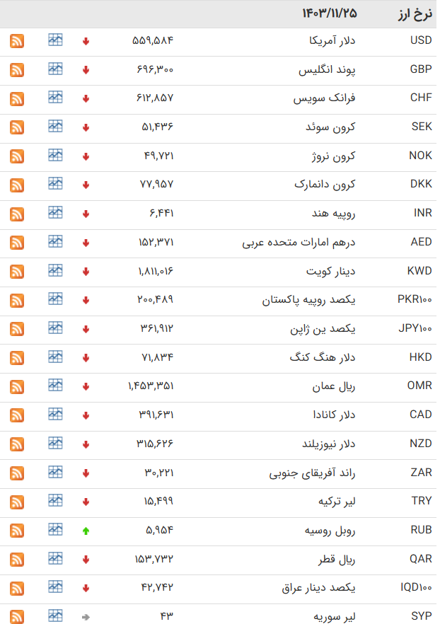| روبل روسیه | RUB | ۷۲۶۴ | ۷۳۳۰ | ۱۲۲ | ۷۰۶۷ | ۷۱۳۱ | ۱۲۰ |