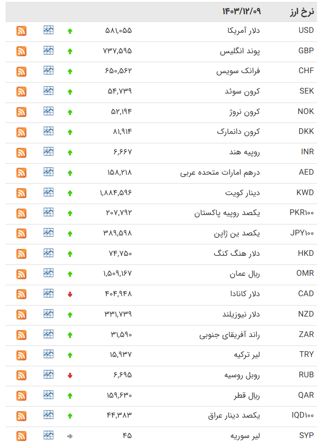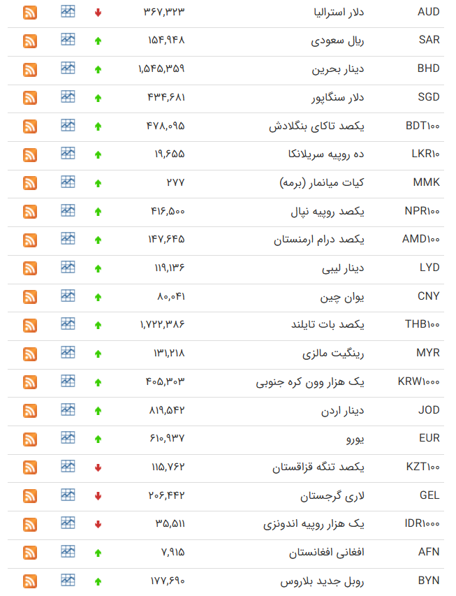 نرخ سایر ارزها و تغییرات آن به تفصیل در جدول زیر آمده است.
