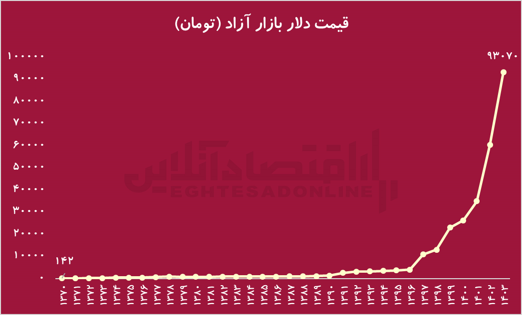 با نگاهی ساده به دادههای بانک مرکزی میتوان مشاهده کرد که نرخ دلار از ۱۴۲ تومان در سال ۱۳۷۰ به ۹۳ هزار تومان در سال ۱۴۰۳ رسیده است. یعنی طی این سالها نرخ دلار حدود ۶۵۴۳۳ درصد رشد کرده است. به عبارت دیگر در این مدت نرخ دلار ۶۵۵ برابر شده است. اگر ۱ میلیون تومان در سال ۱۳۷۰ دلار میخریدید، امروز ارزش آن بیش از ۶۵۵ میلیون تومان بود! این آمار نشاندهنده تأثیرات تورم، تحریمها، سیاستهای ارزی و تغییرات کلان اقتصادی بر قدرت خرید مردم و آینده سرمایهگذاری در ایران است.