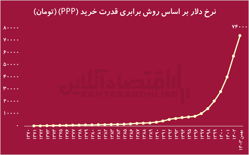 افزایش نرخ دلار تا ۷۴ هزار تومان را شاید بتوان بر اساس شرایط اقتصادی کشور و رویکرد برابری قدرت خرید (PPP) توجیه کرد. برابری قدرت خرید (Purchasing Power Parity - PPP) یکی از نظریههای اقتصادی است که میگوید نرخ ارز بین دو کشور باید بهگونهای تنظیم شود که قدرت خرید یک سبد کالا و خدمات در هر دو کشور برابر باشد. یعنی اگر یک کالا در ایران ۷۴ هزار تومان و در آمریکا ۱ دلار باشد براساس نظریه برابری قدرت خرید میبایست نرخ واقعی دلار ۷۴ هزار تومان برای امسال باشد. در این چارچوب، رشد نرخ ارز ناشی از تورم داخلی، کاهش ارزش ریال، افزایش نقدینگی و وضعیت تراز تجاری کشور بوده است.