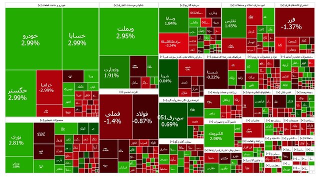 فارس، وبملت و نوری بیشترین تاثیر مثبت را بر شاخص بورس داشتند. از نمادهای پرتراکنش نیز می‌توان به خودرو، خساپا و محتشم اشاره کرد.