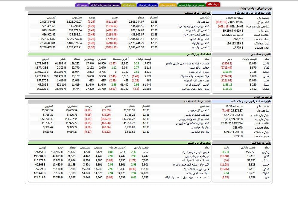 بیشترین اثر منفی بر دماسنج بازار سهام در روز جاری به نام نمادهای معاملاتی فارس، فولاد و فملی شد و در مقابل نمادهای وبملت، شپنا و شتران با رشد خود مانع افت بیشتر نماگر بازار سهام شدند.