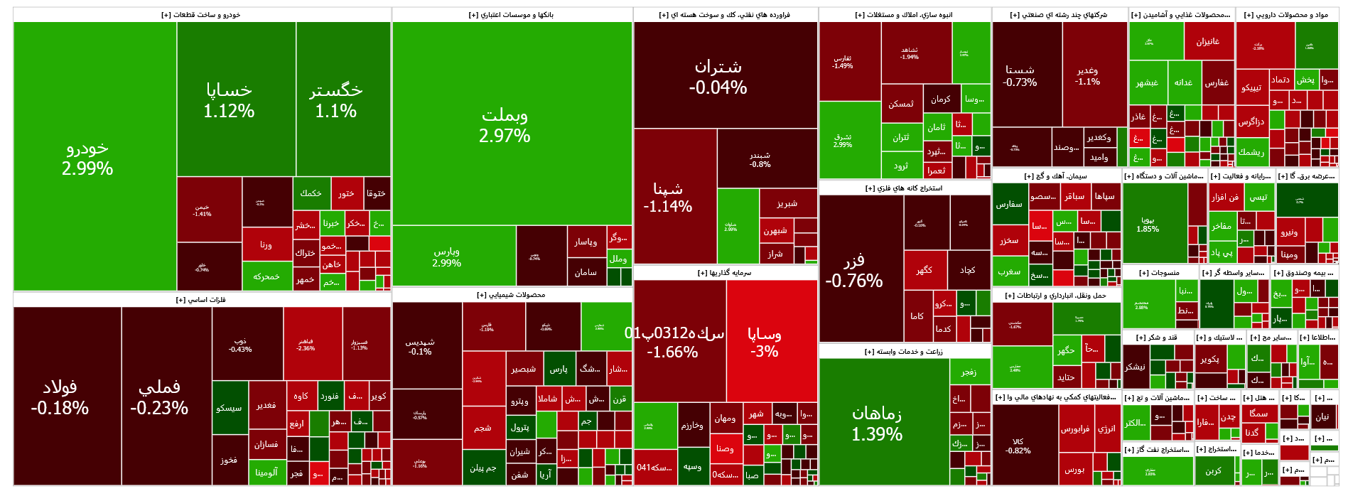 در مقابل نمادهای وبملت و خودرو بیشترین تاثیر مثبت را بر شاخص کل بازار سهام برجای گذاشتند.
