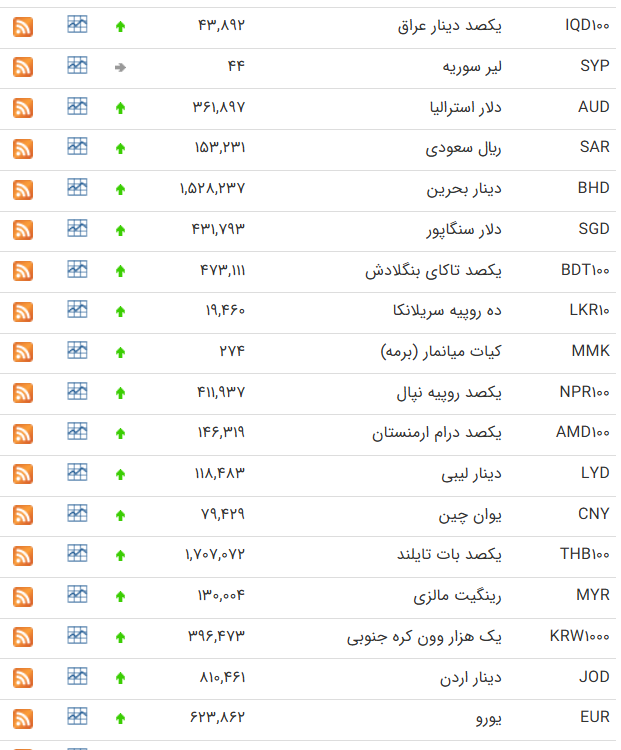 از سوی دیگر اسکناس درهم امارات نیز با افزایش به 19 هزار و 165 تومان ارزش‌گذاری شده و نرخ حواله درهم نیز 18 هزار و 643 تومان است