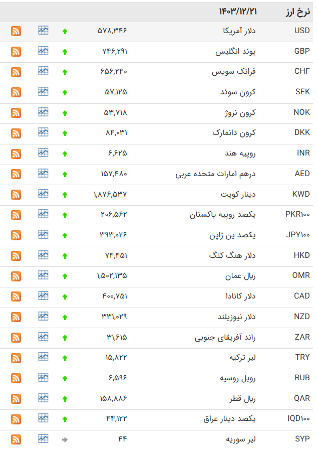 افزایش نرخ دلار ، یورو و پوند در بانک مرکزی