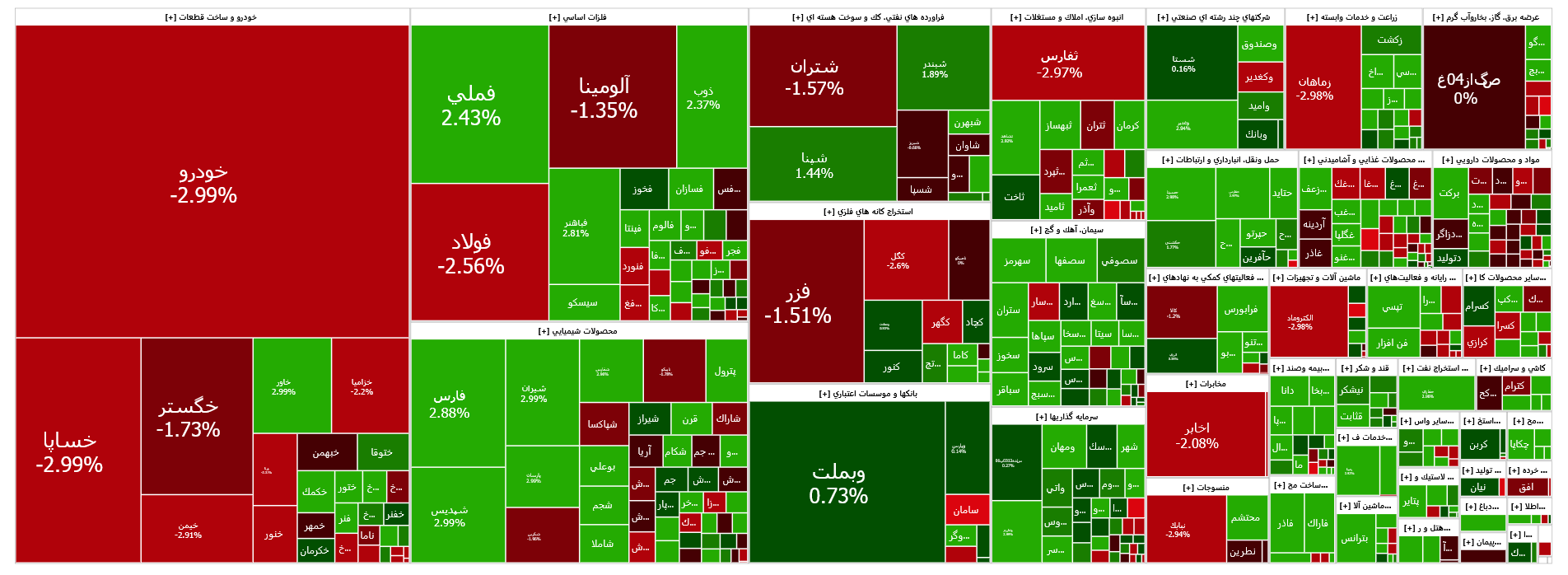در مقابل نمادهای فولاد و خودرو بیشترین تاثیر منفی را بر شاخص کل بازار سهام برجای گذاشتند.