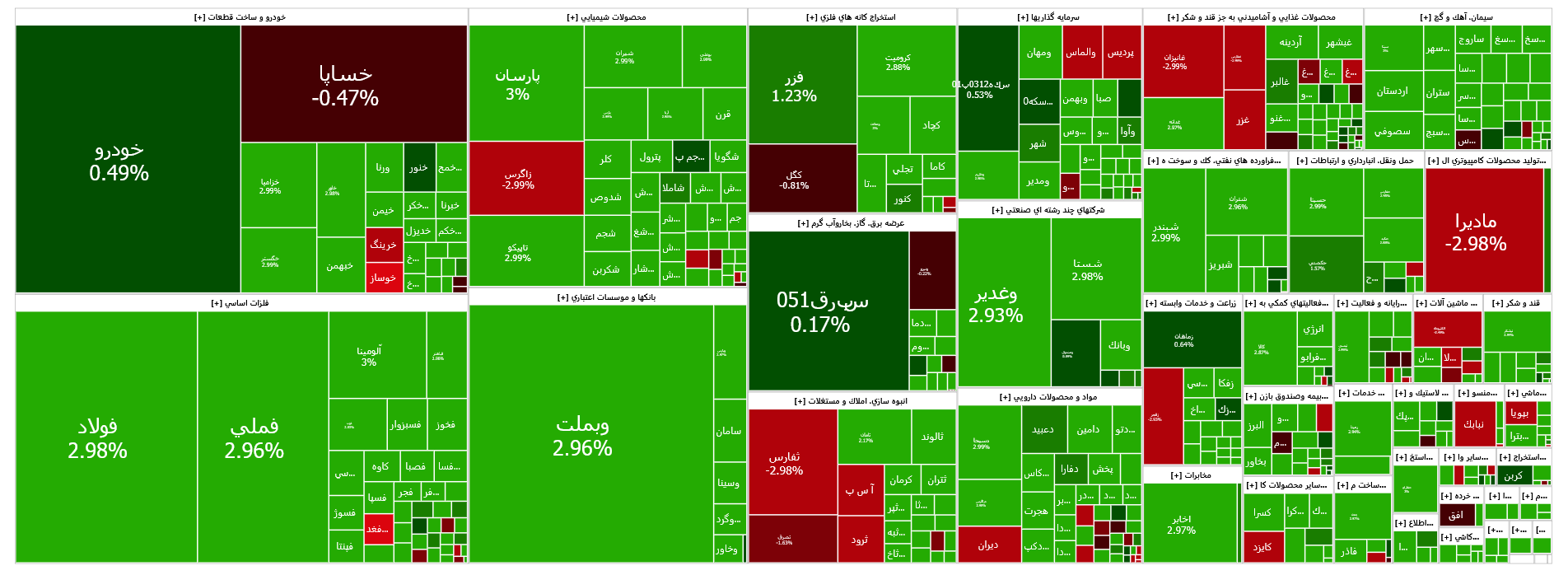 شاخص کل بورس که روز کاری گذشته ۰.۲۴ درصد رشد کرده بود، امروز نیز ۱.۵۹ درصد مثبت شد.
