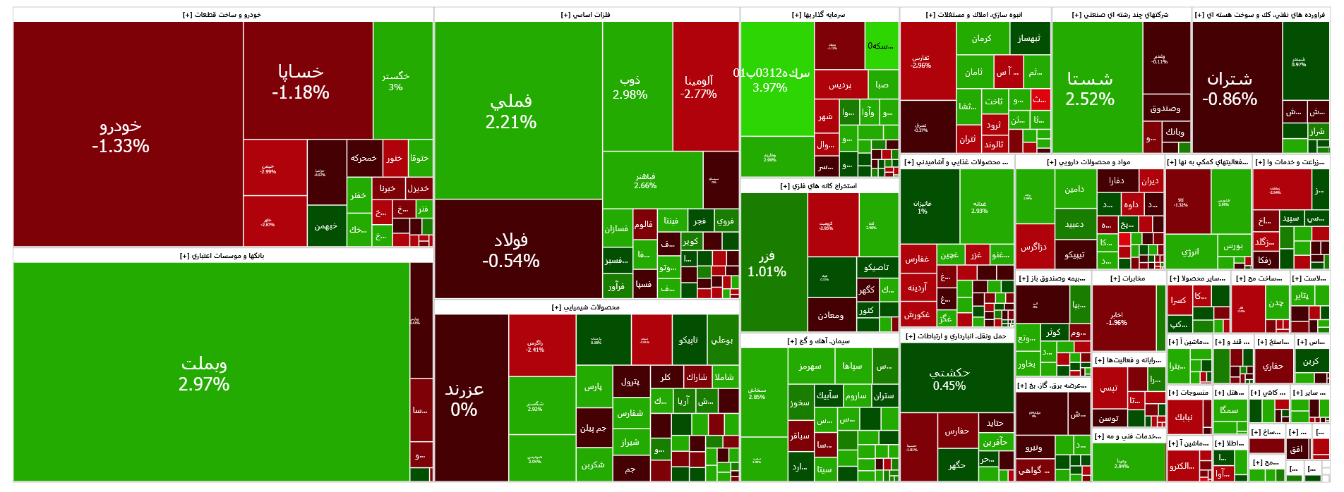 در این روز به ترتیب نمادهای فملی، شستا، پارس و وبملت بیشترین تاثیر مثبت را بر شاخص کل بازار سرمایه داشتند و عامل رشد بازار سرمایه شدند.