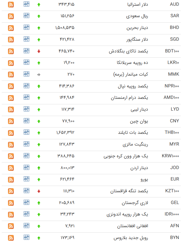 از سوی دیگر اسکناس درهم امارات نیز با افزایش به 19 هزار و 268 تومان ارزشگذاری شده و نرخ حواله درهم نیز 18 هزار و 743 تومان است