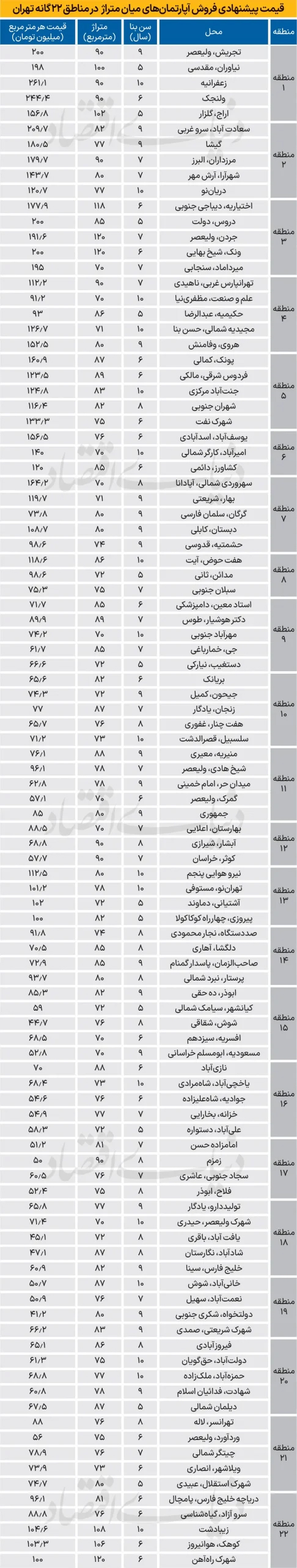 قیمت آپارتمان در ۲۲ منطقه تهران در سال جدید اعلام شد+ جدول