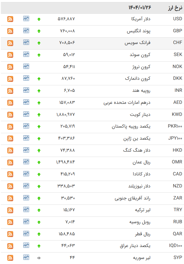 در معاملات امروز (سه شنبه 26 فروردین ۱۴۰۴) مرکز مبادله ارز و طلای ایران قیمت دلار 203 تومان و قیمت یورو 214 تومان ارزان شد.