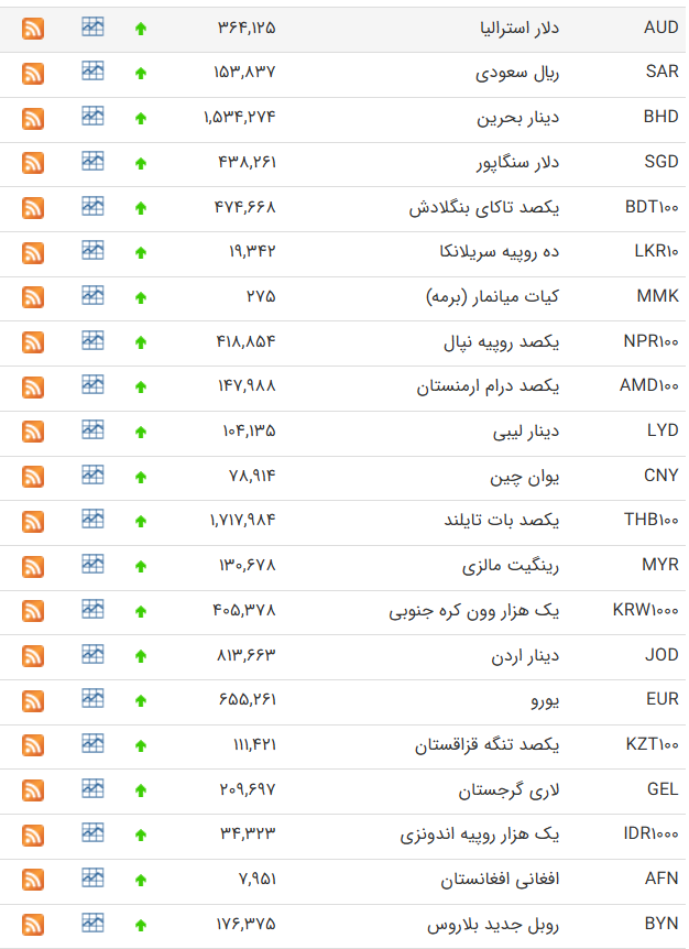 از سوی دیگر اسکناس درهم امارات نیز با کاهش به 19 هزار و301 تومان ارزشگذاری شده و نرخ حواله درهم نیز 18 هزار و 776 تومان است