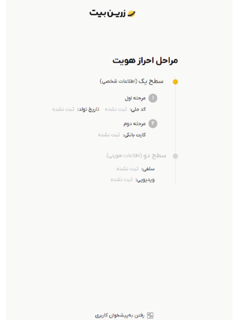 ارائه اطلاعات هویتی: در سطح یک باید اطلاعات هویتی خود از قبیل کد ملی و تاریخ تولدتان را درج کنید. در مرحله دوم از شما خواسته میشود که شماره کارت بانکی که به نام شماست را ارائه دهید. برای ارتقا به سطح دو هم باید با دوربین یا وبکم، طبق راهنمایی که در اختیارتان قرار میگیرد از خودتان تصویر سلفی و یک ویدیوی کوتاه بگیرید تا فرایند احراز هویتتان برای انجام معاملات و استفاده از خدمات زرین بیت کامل شود.