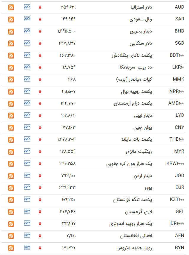 از سوی دیگر اسکناس درهم امارات نیز با کاهش به 19 هزار و 388 تومان ارزشگذاری شده و نرخ حواله درهم نیز 18 هزار و 860 تومان است