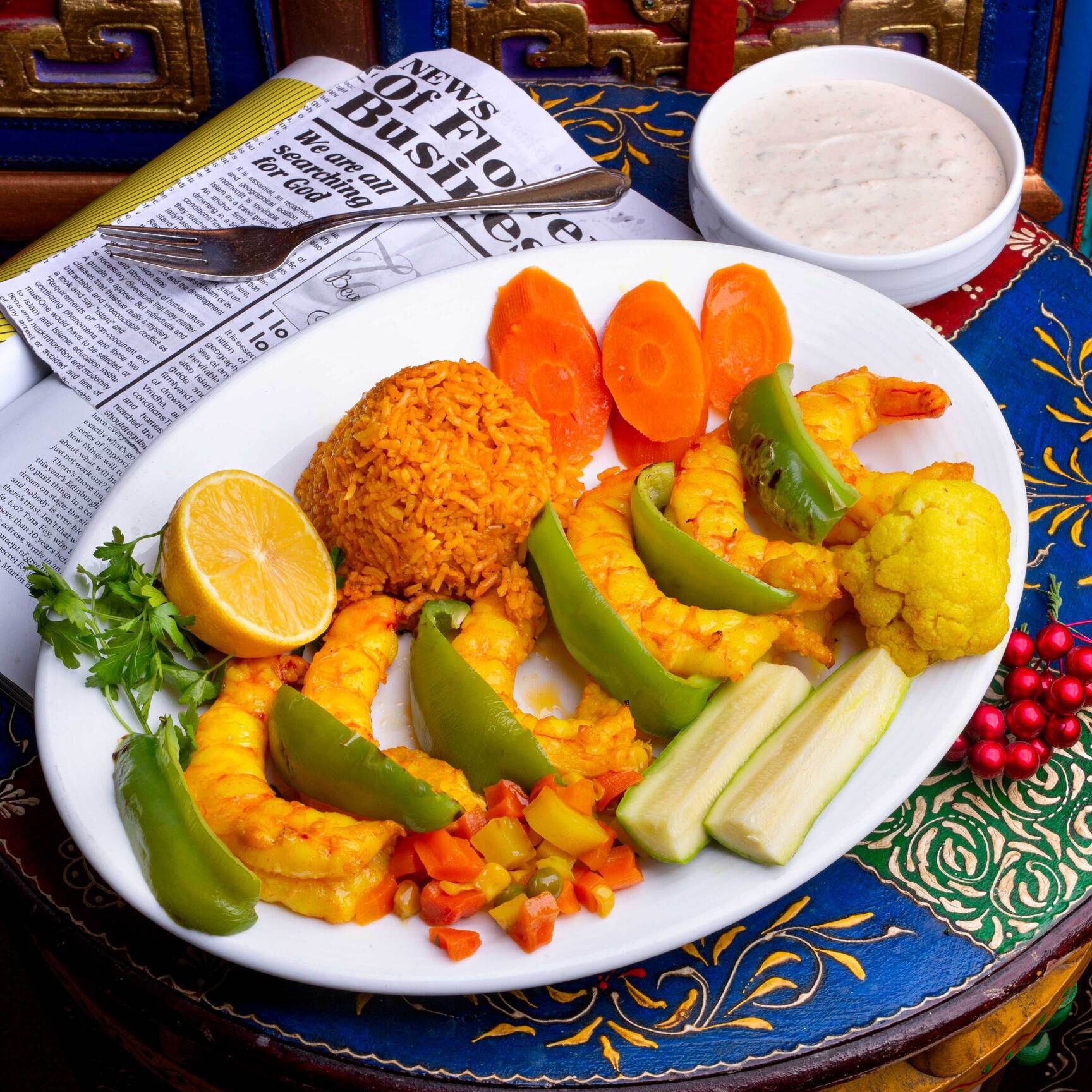 بشقابی با 5 عدد شاه میگو و سس مخصوص و سبزیجات فصل یک میلیون و 250 هزار تومان قیمت دارد. استیک سالمون و سیبزمینی سرخ شده و سبزیجات فصل هم یک میلیون و 350 هزار تومان قیمتگذاری شده.