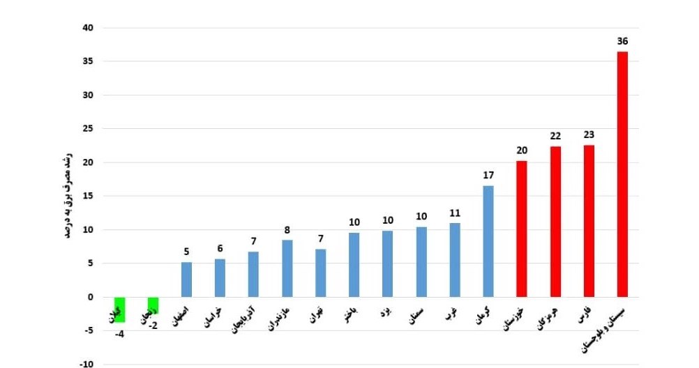 ۶ استان سیستانوبلوچستان، خوزستان، فارس، بوشهر، هرمزگان و کهکیلویهوبویراحمد با رشد بیش از ۲۰ درصدی، استانهای رکورددار افزایش مصرف برق در سال جاری لقب گرفتند.