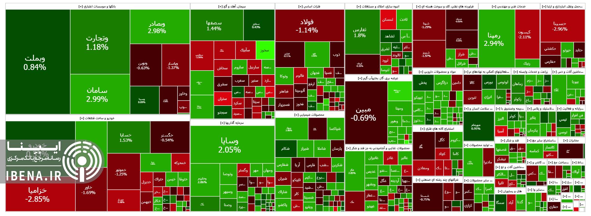 در مقابل نمادهای وبملت و رمپنا بیشترین تاثیر مثبت را بر شاخص کل بازار سهام برجای گذاشتند.