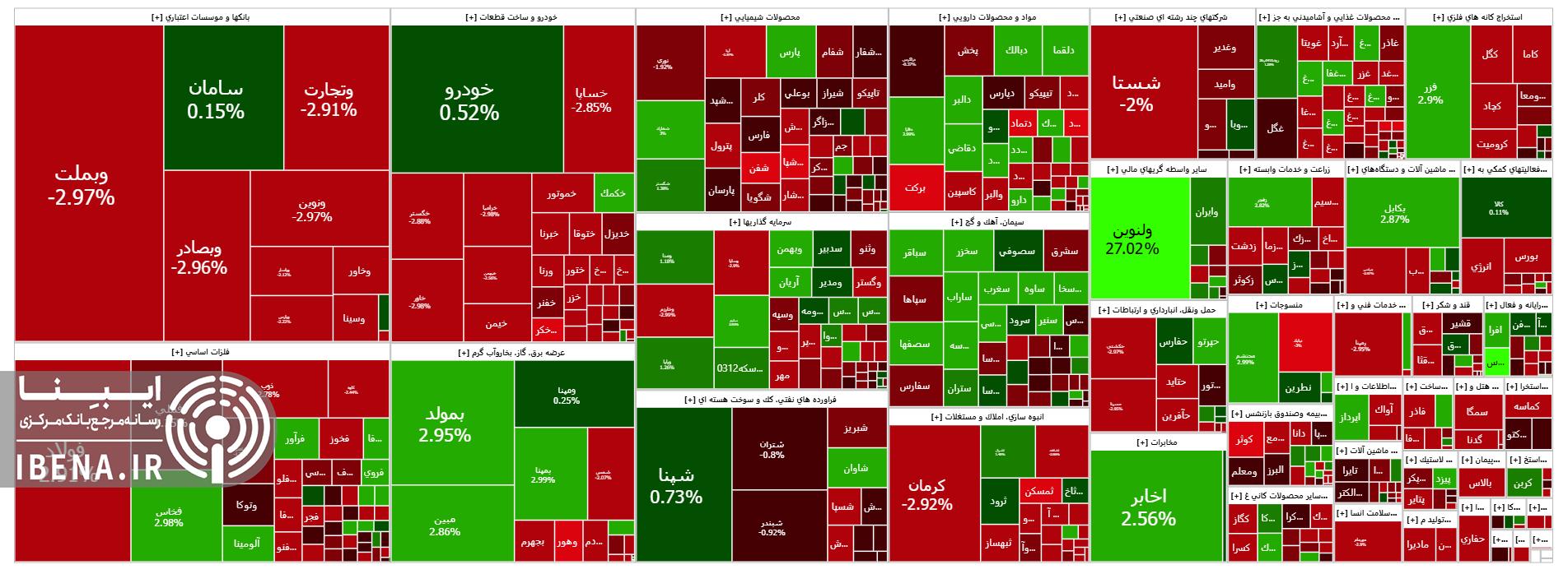 در حالی شاخص کل بورس روز کاری گذشته ۰.۵۹ درصد رشد کرده بود، امروز ۰.۷۴ درصد افت کرد.