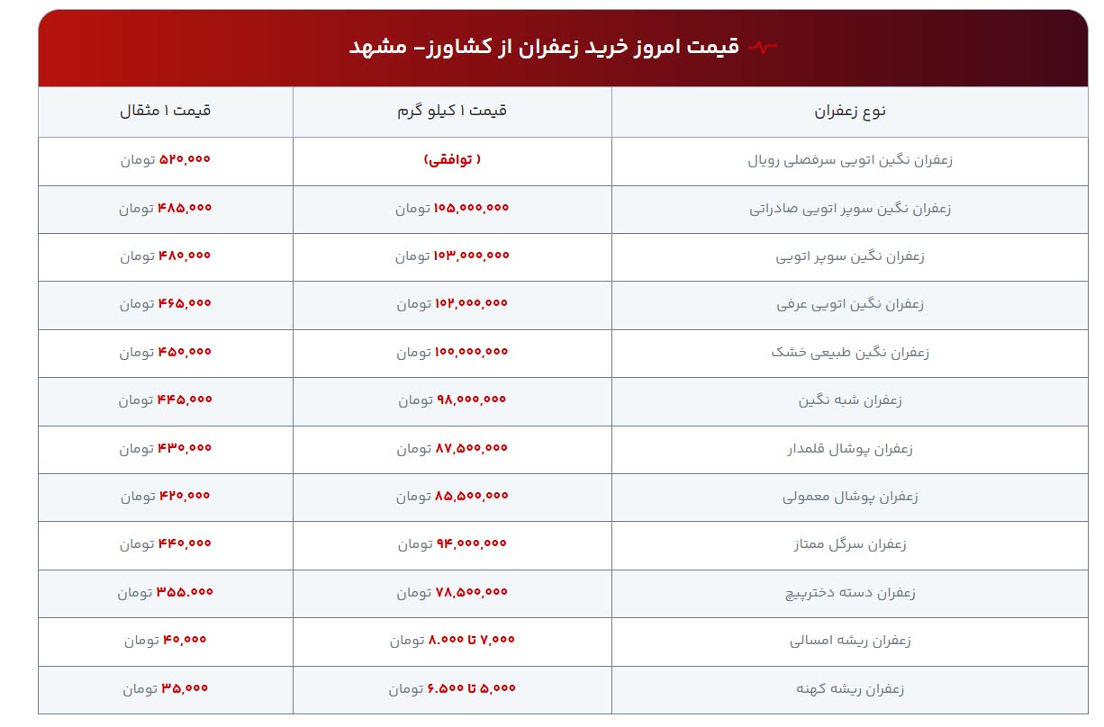 ریزش چشمگیر قیمت زعفران/ هر کیلو زعفران چقدر شد؟+ جدول