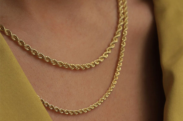 زنجیرهای طنابی با پیچاندن چندین رشته سیم طلایی به یکدیگر ساخته میشوند و ظاهری طنابمانند و متمایز ایجاد میکنند. انعطافپذیری زنجیرهای طنابی بسته به ضخامت و مهارت ساخت متفاوت است، به طوری که زنجیرهای ضخیمتر انعطافپذیری کمتری دارند، در حالی که زنجیرهای نازکتر انعطاف بیشتری دارند. زنجیرهای طنابی، در صورت ساخت خوب، بادوام و مناسب برای استفاده روزانه هستند. میتوان آنها را به تنهایی به عنوان یک قطعه خاص پوشید یا با یک آویز منحصر به فرد ترکیب کرد مثل یک گردنبند طلا اسم.