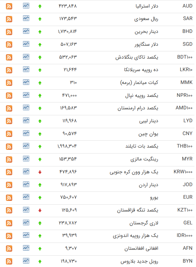 از سوی دیگر اسکناس درهم امارات نیز با افزایش به 19 هزار و 434 تومان ارزشگذاری شده و نرخ حواله درهم نیز 18 هزار و 905 تومان است