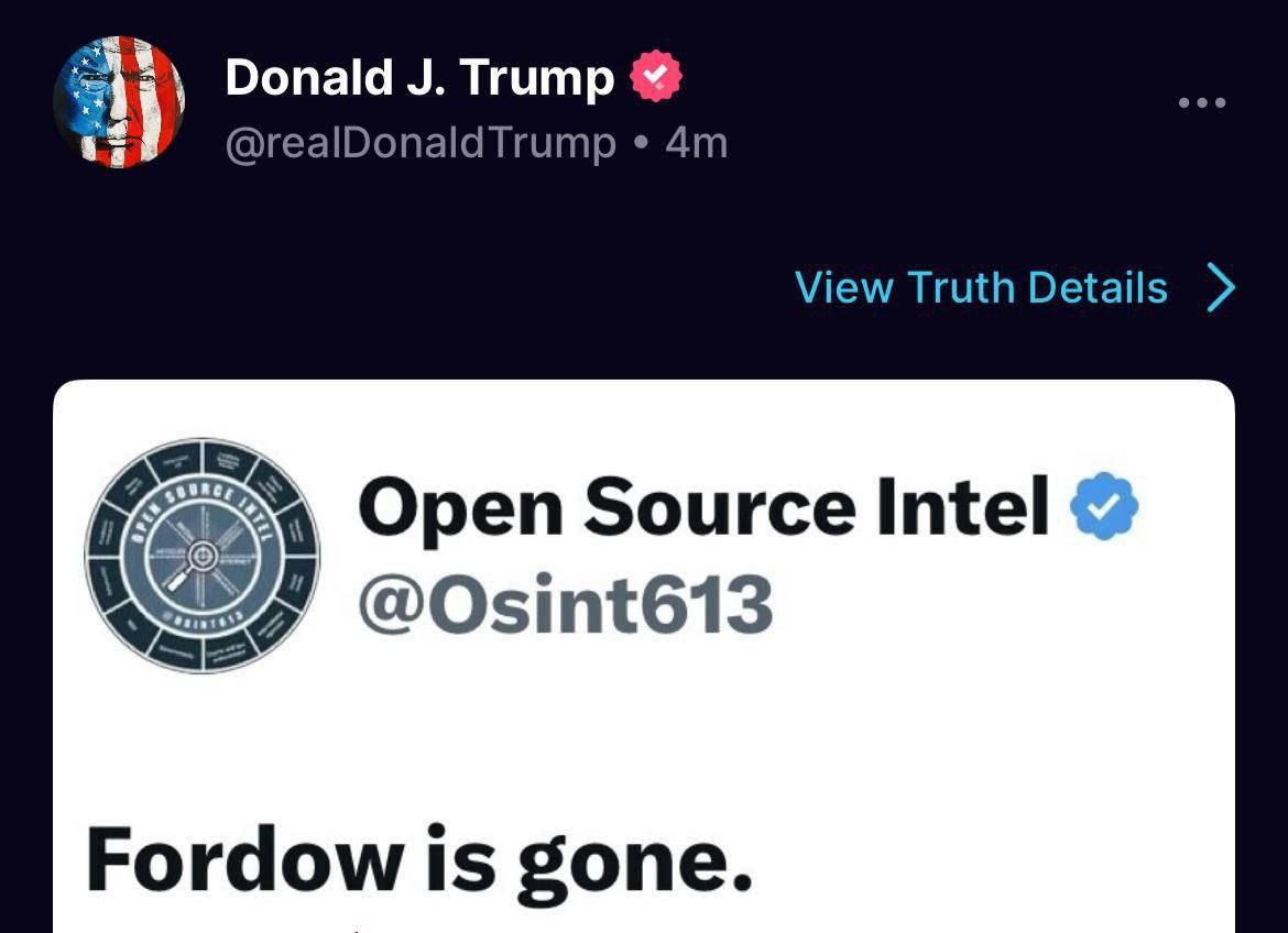 ترامپ این پیام را منتشر کرد: «فردو نابود شد»