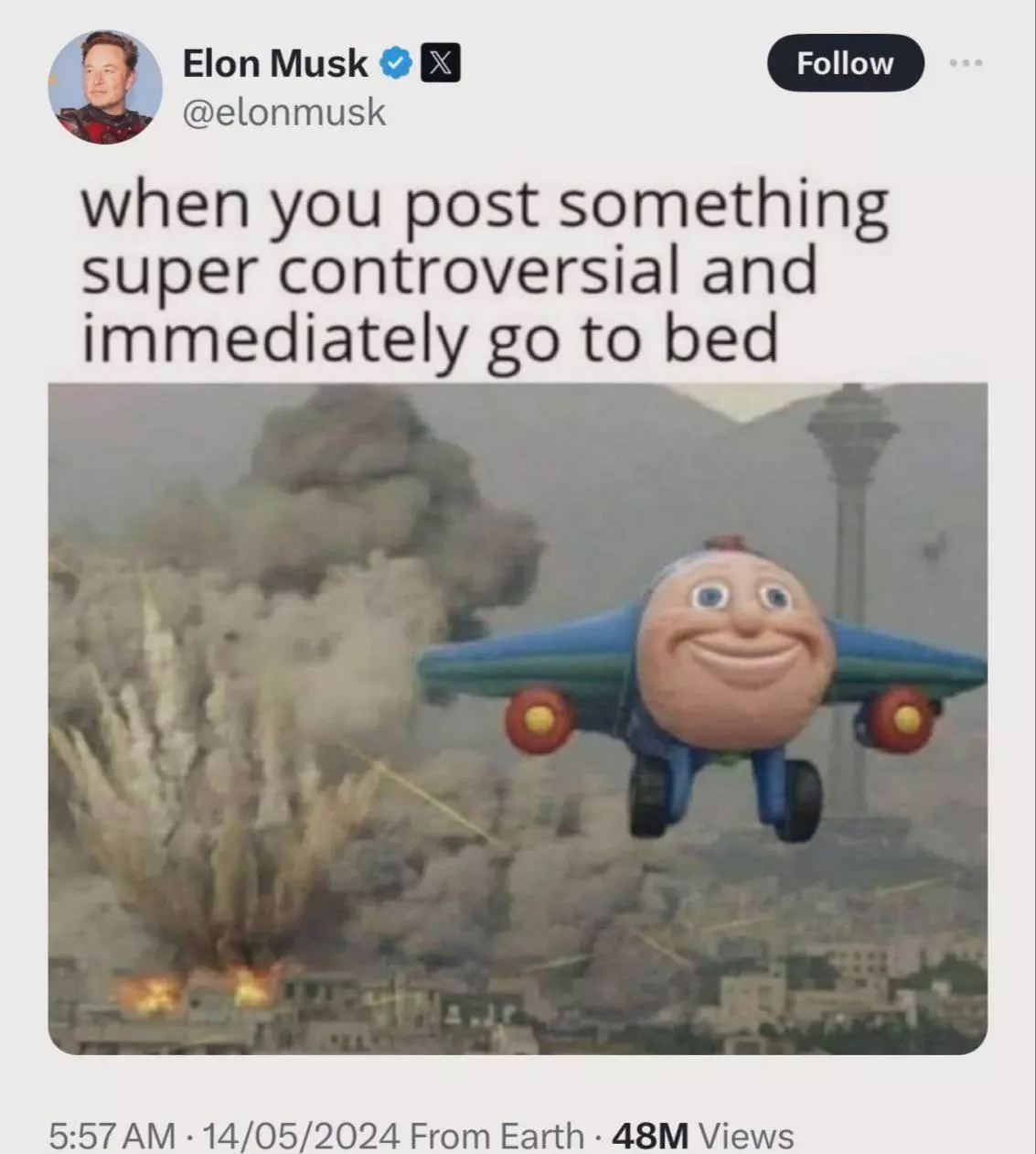در این میان کاربران شبکه‌های اجتماعی به موضوعی اشاره کرده‌اند که توجه به آن خالی از لطف نیست. ایلان ماسک در سال گذشته یک پست را در توییتر منتشر کرد که نمایی از یک شهر در حال بمباران را نشان می‌دهد.