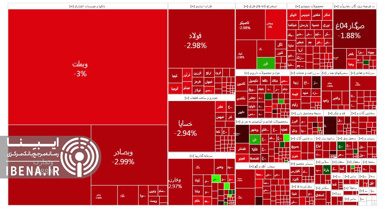 شاخص کل بازار سرمایه که روز کاری گذشته ۲.۶۷ درصد افت کرده بود، امروز نیز ۱.۹۸ درصد منفی شد.