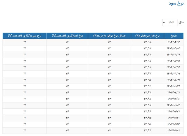 گفتنی است؛ در آذرماه سال ۱۴۰۳، نرخ بهره بین بانکی به کانال ۲۳.۹ درصد وارد شد و از آن زمان تا امروز در همین محدوده و نزدیک به ۲۴ درصد متغیر بوده است. البته این نرخ در دی و بهمن ماه سال گذشته به ۲۳.۹۸ درصد رسید، اما هیچ زمانی از مرز آن عبور نکرد و وارد کانال ۲۴ درصد نشد. با این حال، طی چند ماه اخیر نرخ بهره بین بانکی در نزدیکترین محدوده خود با کانال ۲۴ درصد تثبیت شده است.