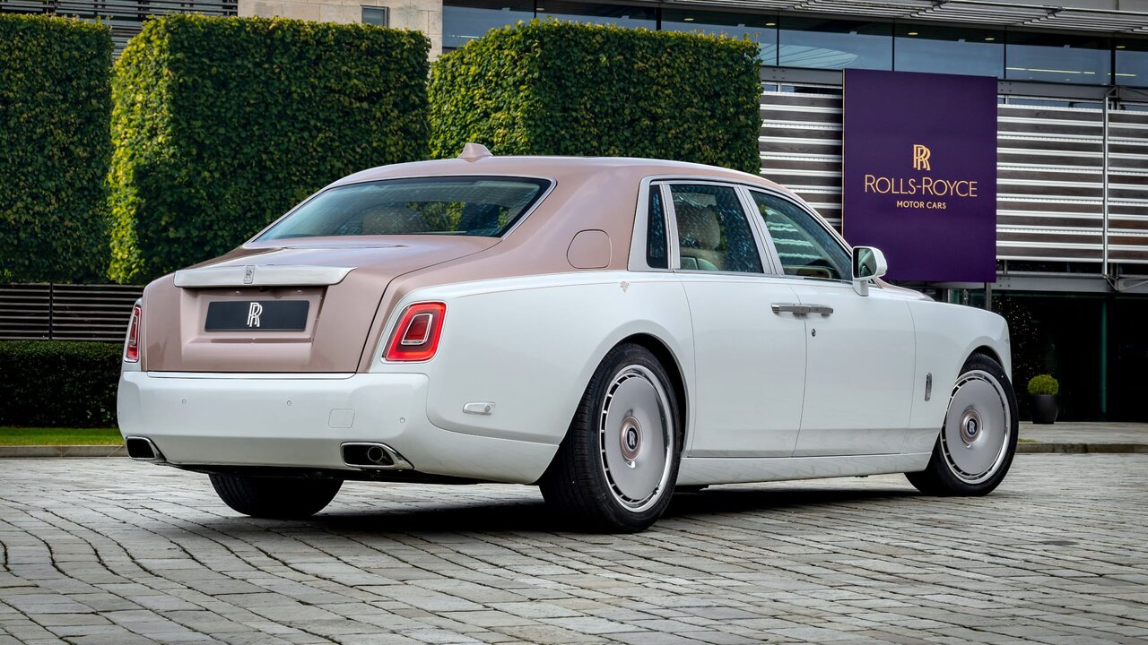 بدنه باوقار و متمایز فانتوم دارای رنگآمیزی دو رنگ است؛ با قسمت پایینی که با رنگ Crystal over Arctic White و قسمت بالایی که با رنگ Crystal over Palais Nemasker Dawn رنگآمیزی شده است. جلوپنجره خودرو نیز میزبان مجسمه مشهور رولزرویس از جنس طلای رزگلد است. همچنین یک خط ظریف از جلوپنجره تا چراغهای عقب در هر دو طرف کشیده شده و با یک خط سفید در امتداد کاپوت و پس از درهای عقب همراه شده است.
