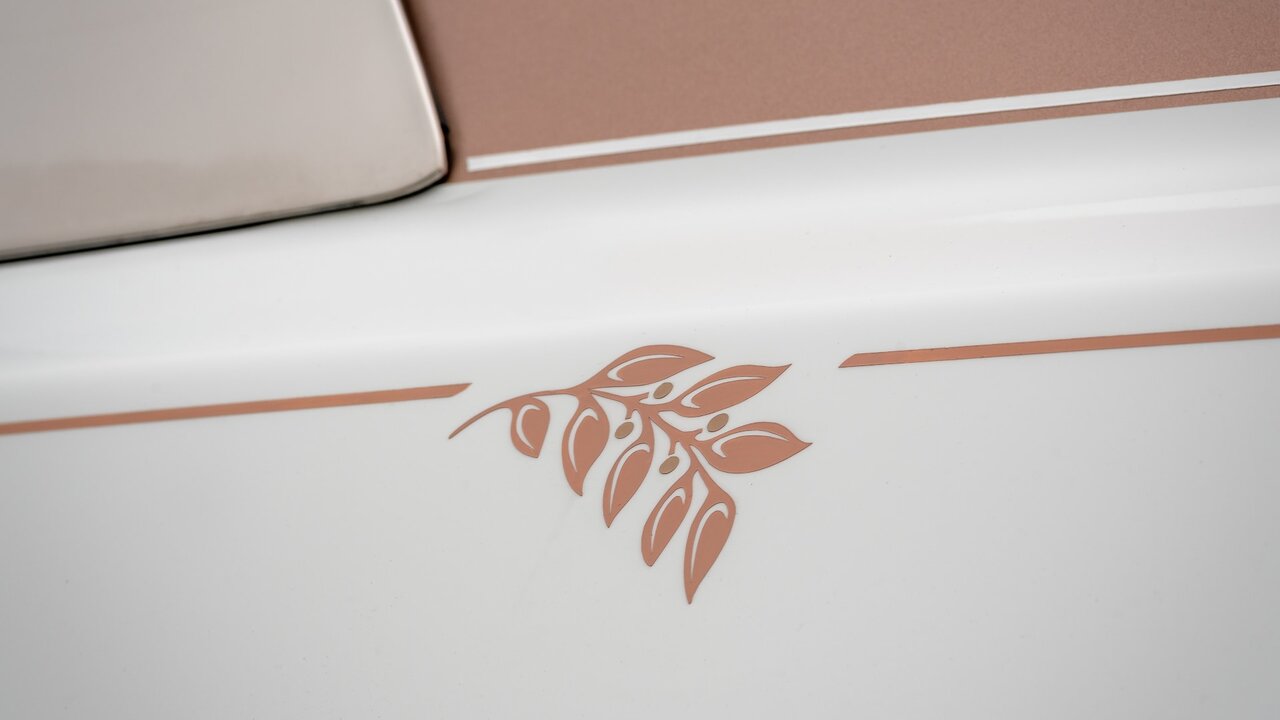 بالای چرخ عقب، خط اصلی بدنه که به رنگ طلوع آفتاب است، با یک نقاشی دستی پیچیده از یک شاخه برگدار قطع شده است. رینگهای ۲۲ اینچی دارای یک درپوش مرکزی با حلقهای به رنگ بدنه هستند.