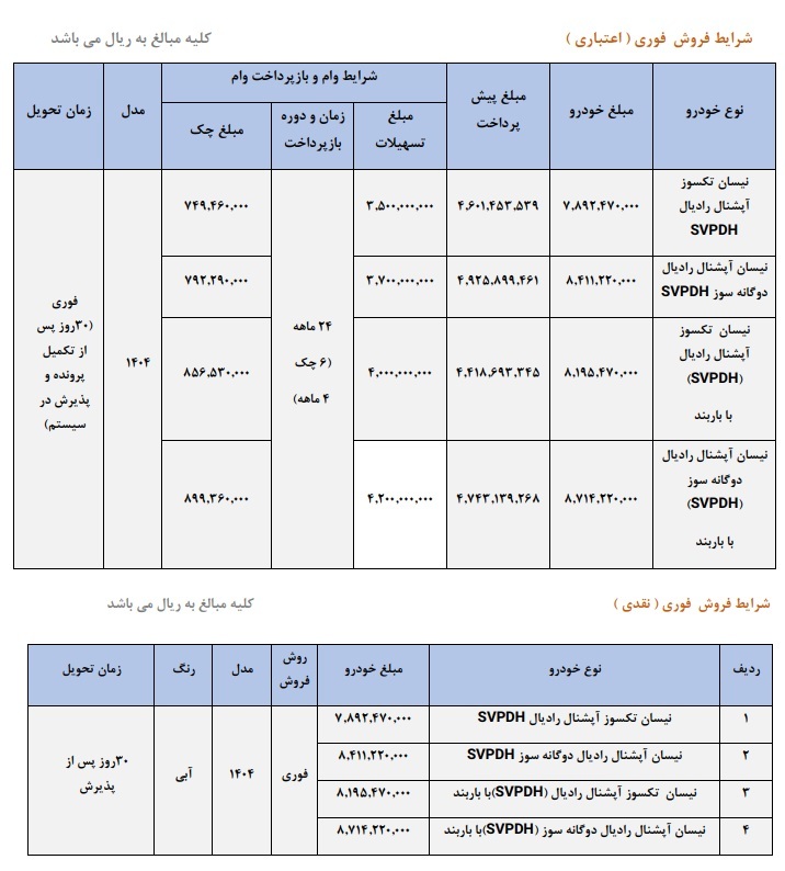 شرایط طرح فروش وانت نیسان تیر 1404: