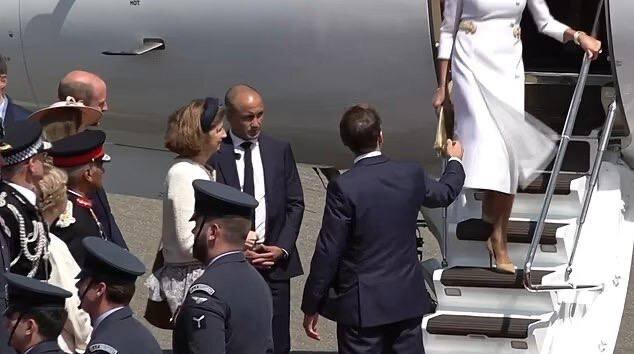 در پی ماجرای سیلی خوردن ماکرون از همسرش، حالا این بار همسر رئیس جمهور فرانسه در واکنش به پیشنهاد کمک او برای پیاده شدن از هواپیما در لندن، دست رد به سینه ماکرون زد!