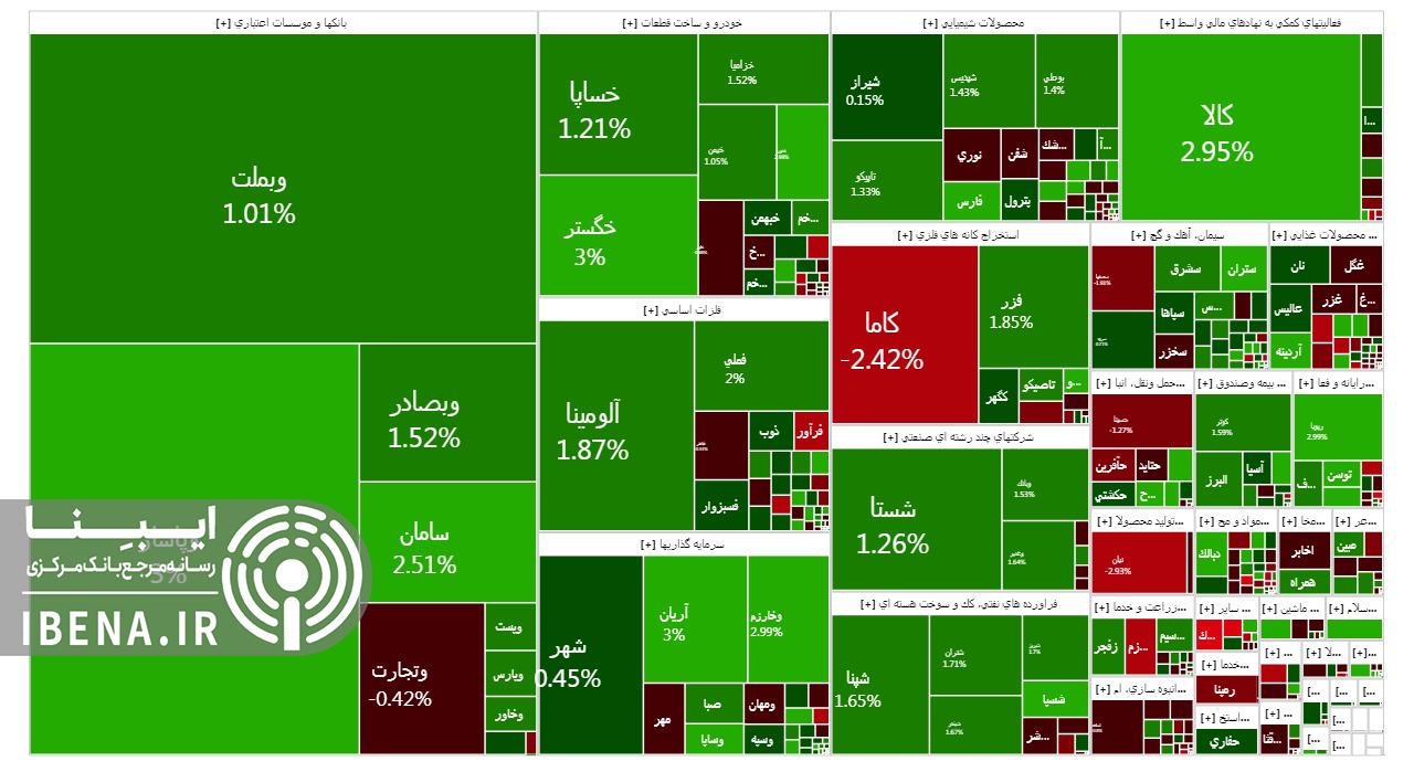 شاخص کل بورس که روز کاری گذشته ۰.۹۸ درصد رشد کرده بود، امروز نیز ۱ درصد مثبت شد.