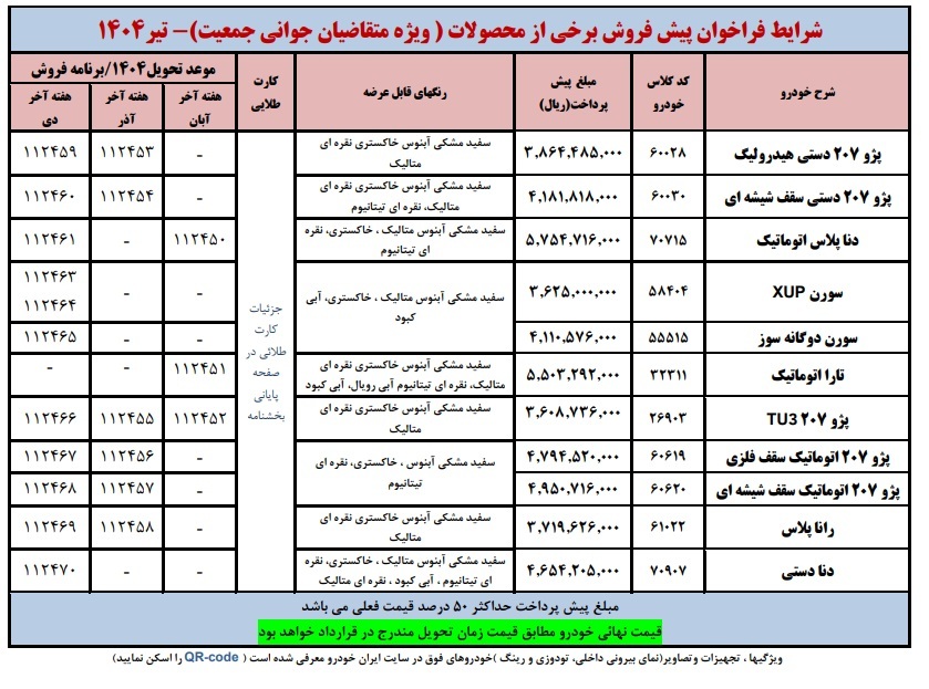 شرایط طرح پیش فروش ایران خودرو ویژه طرح جوانی تیر 1404: