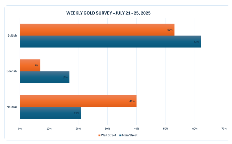 آخرین نظرسنجی هفتگی کیتکو نیوز در مورد طلا نشان داد که کارشناسان این صنعت هنوز در مورد چشم‌انداز کوتاه‌مدت طلا بین دیدگاه‌های صعودی و خنثی اختلاف نظر دارند، در حالی که معامله‌گران خرد به گرایش صعودی معمول خود بازگشته‌اند.