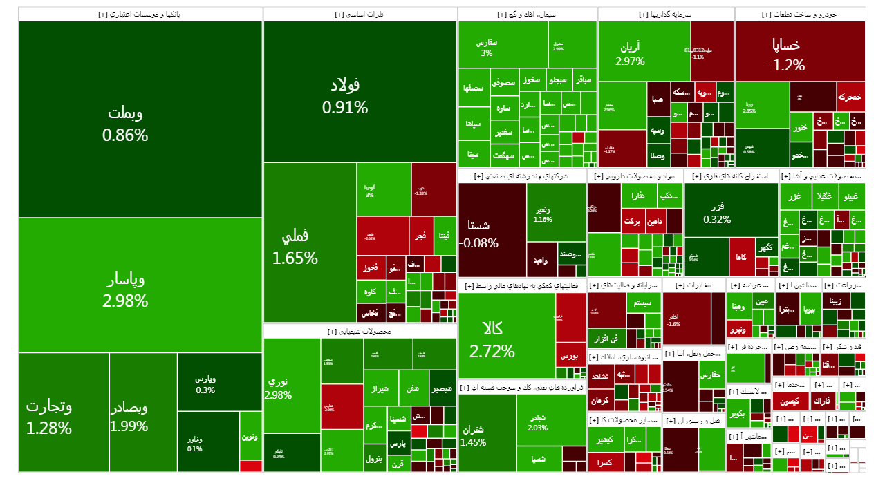 شاخص کل بورس که روز کاری گذشته ۰.۵۷ درصد رشد کرده بود، امروز نیز ۰.۸۱ درصد مثبت شد.