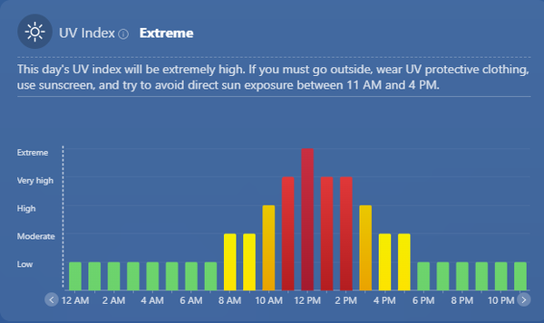 شاخص اشعه فرابنفش فردا در تهران به بیشترین حد قابل ثبت خود میرسد. تنها راه در آمان ماندن از تابش فرابنفش ماندن در ساختمان محل فعالیت است.