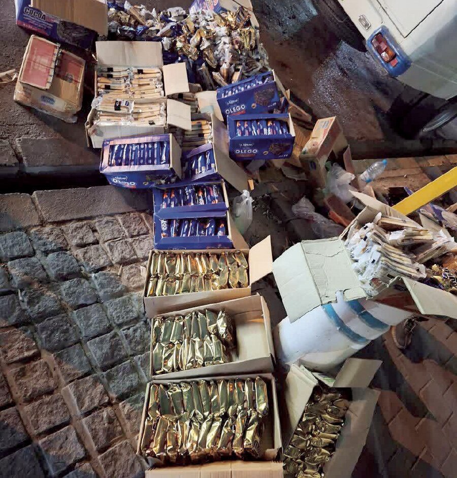 طولی نکشید که با هماهنگیهای قضایی، نیروهای انتظامی به انبار ضایعاتفروشی در منطقه شهید طرحچی رفتند و علاوه بر تعداد زیادی کیک،بیسکویت و ویفر با همان مارکهای تجاری، چند دستگاه ضبط و پخش، باتری، باند خودرو و مقادیر زیادی میلگرد و آهنآلات کشف کردند.