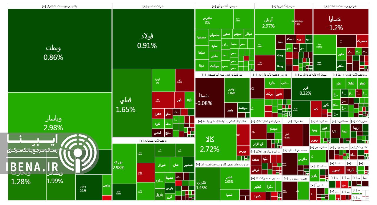 شاخص کل بورس که روز کاری گذشته ۰.۸۱ درصد رشد کرده بود، امروز نیز ۰.۵۲ درصد مثبت شد.