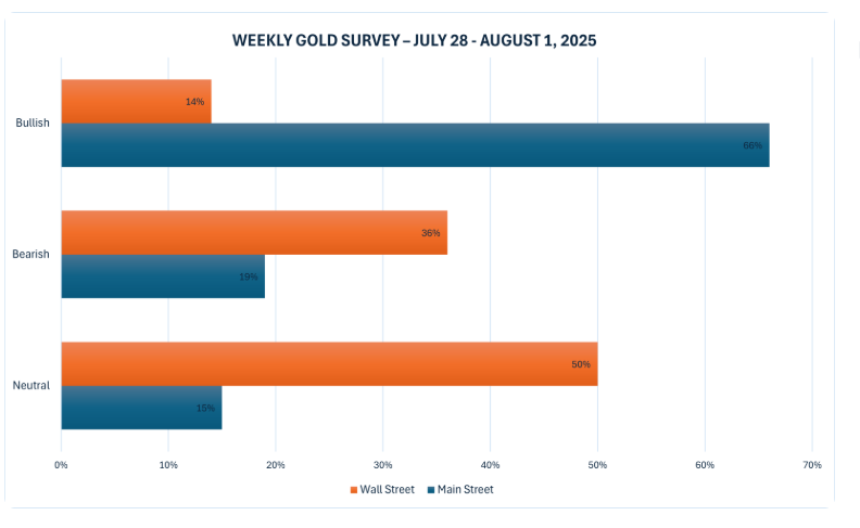 این هفته، ۱۴ تحلیلگر در نظرسنجی طلای کیتکو نیوز شرکت کردند و پس از شکست قیمت طلا، خریداران وال استریت با کمبود عرضه مواجه شدند. تنها دو متخصص یا ۱۴٪ هنوز انتظار دارند که قیمت طلا در طول هفته پیش رو افزایش یابد، در حالی که پنج نفر دیگر، معادل ۳۶٪، کاهش قیمت را پیش‌بینی کردند. هفت تحلیلگر باقی مانده یا ۵۰٪، پیش‌بینی کردند که قیمت فلز زرد هفته آینده در یک محدوده خنثی معامله شود.