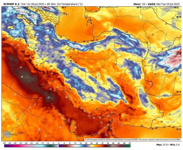 وی با بیان اینکه در ۲۴ ساعت گذشته نیز بیش از ۱۲ ایستگاه هواشناسی دمای بالای ۵۰ درجه را ثبت کردهاند، افزود: پیشبینی میشود روند افزایشی دما در روزهای سهشنبه و بهویژه چهارشنبه ادامه داشته باشد.
